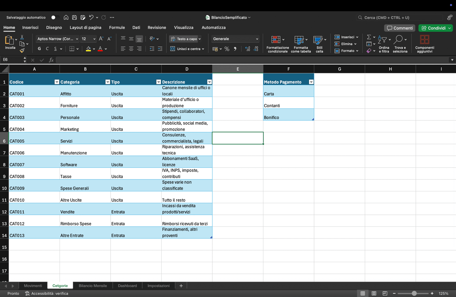 | Registro giornaliero Entrate/Uscite con categorie personalizzabili | Niente più fogli improvvisati: hai uno storico pulito e filtrabile in pochi clic |